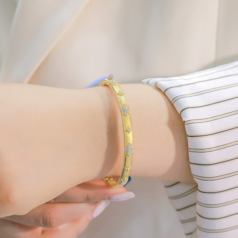 S925 Sterling Silver Jewelry Bangle Hand Made Wire Drawing Craft Silky Surface Texture Palace Style Bangles