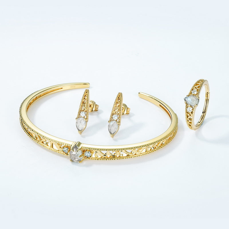 Simple luxury elegant jewelry bangles, hand inlaid with exquisite labradorite gemstone