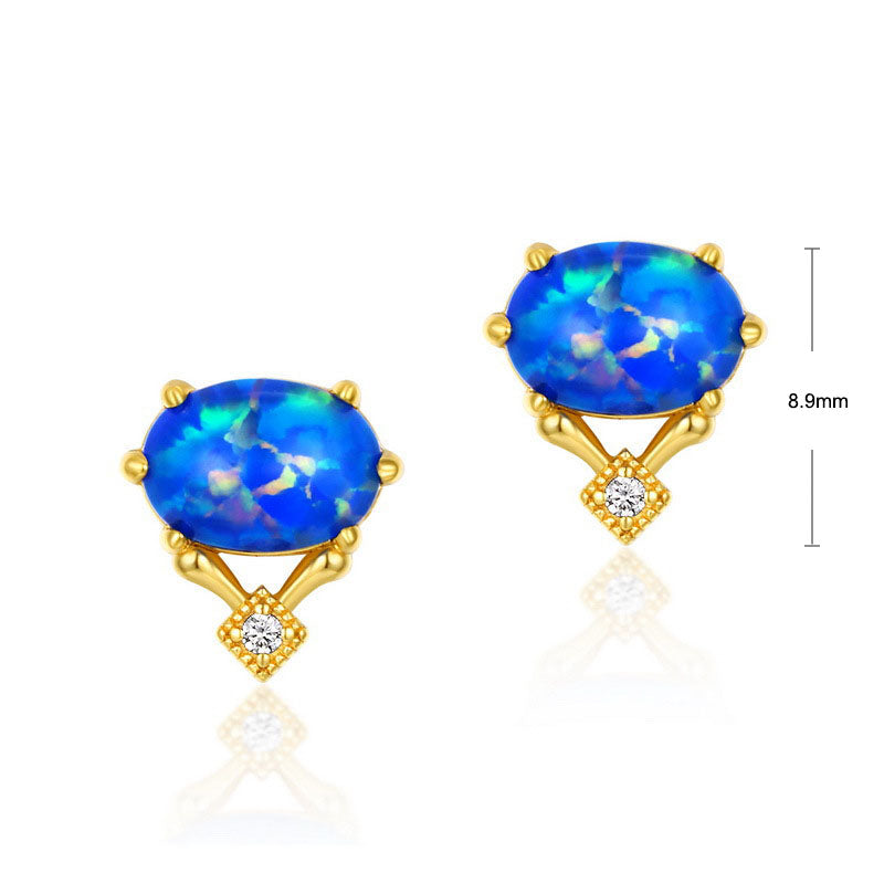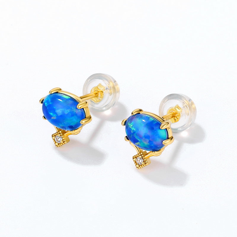S925 Sterling Silver Jewelry Blue Opal Gemstone Vintage Style Simple Luxury Earrings