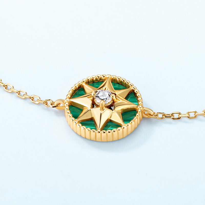 S925 Sterling Silver Jewelry Bracelet Natural Malachite Gemstone Lucky Compass Style Bracelets