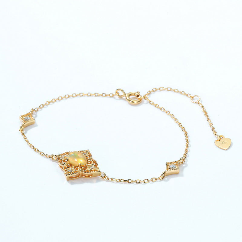 S925 Sterling Silver Jewelry Bracelets Natural Opal Floral Style Simple Luxury Bracelets