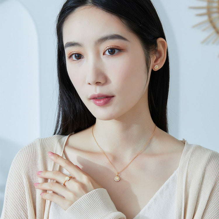 Main Stone: 5*5mm Synthetic Opal, 1.9*1.9mm White Zircon