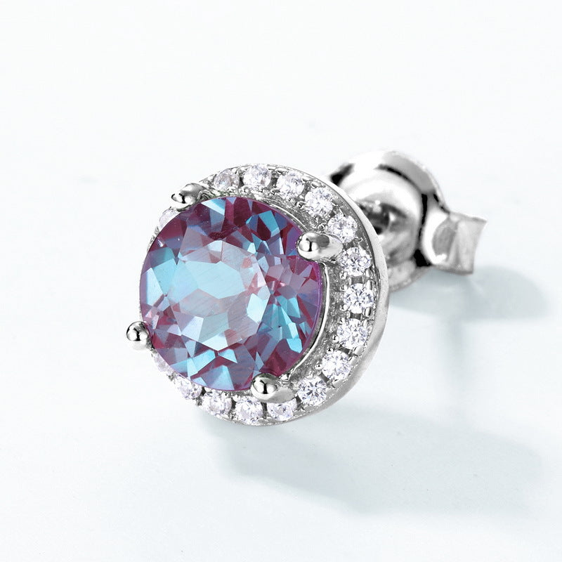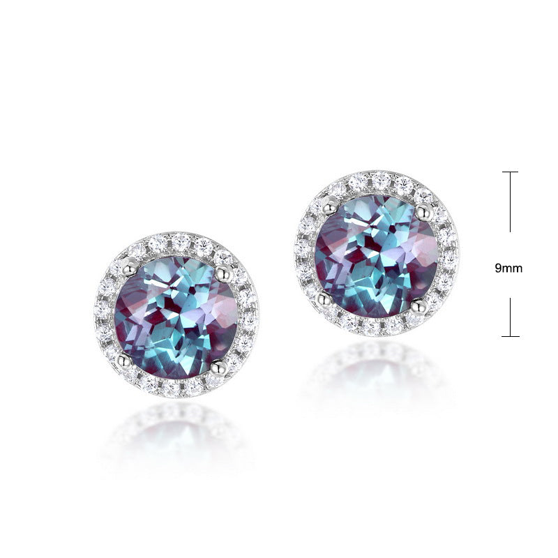 S925 Sterling Silver Jewelry Earrings Alexandrite Gemstone Round Style Stud Earrings