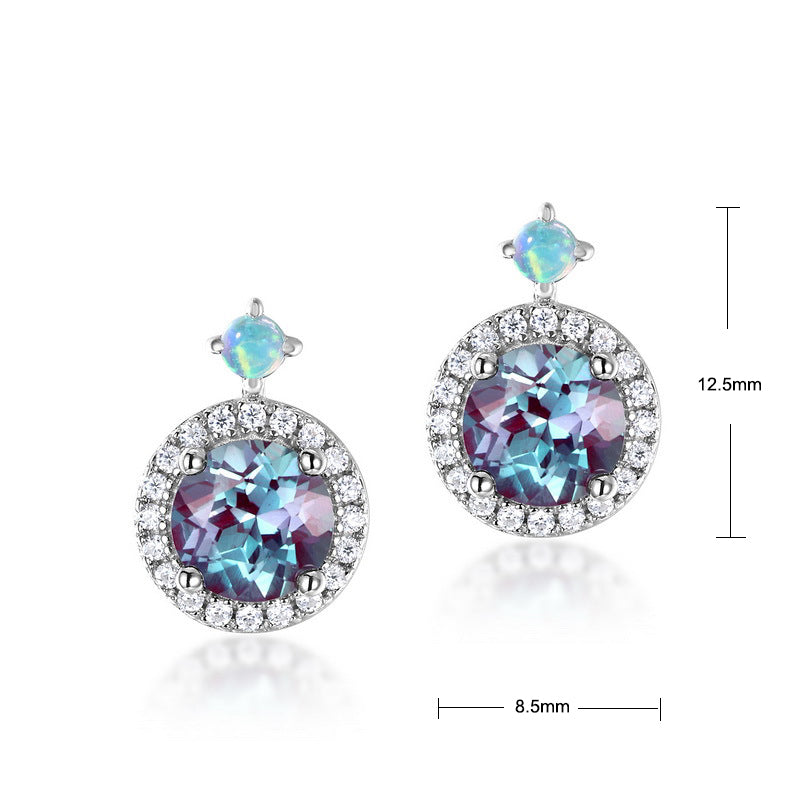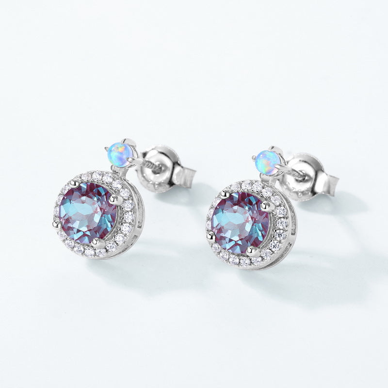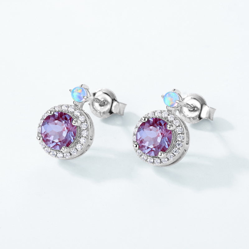 S925 Sterling Silver Jewelry Earrings Alexandrite Gemstone Round Style Stud Earrings