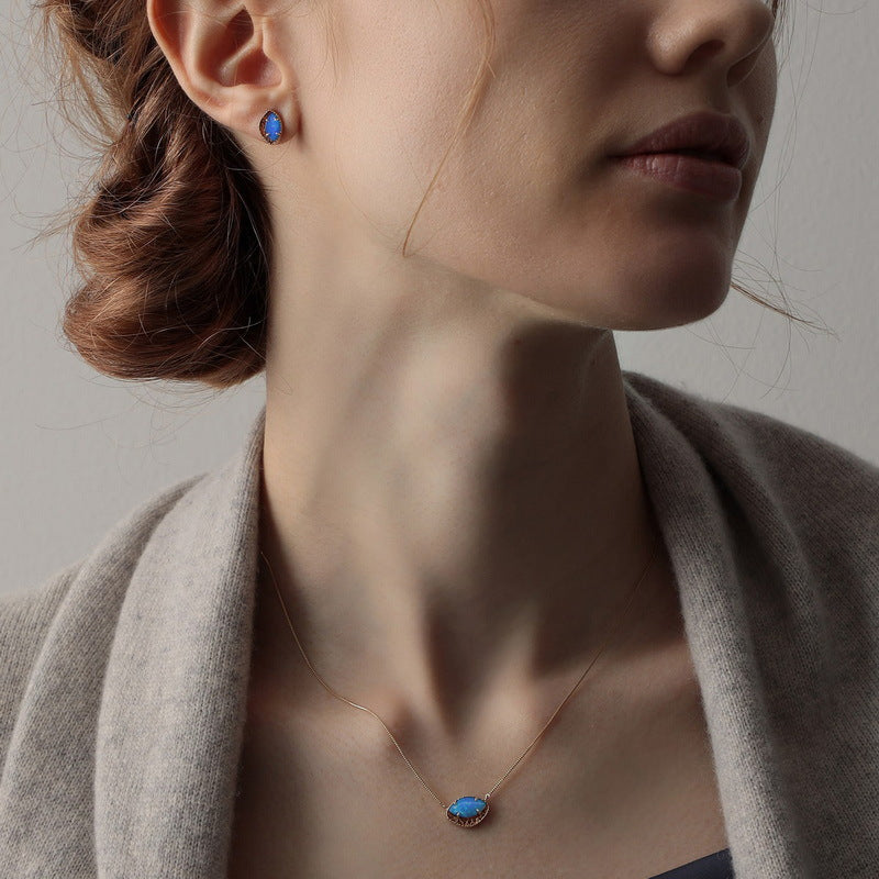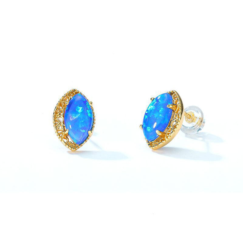 S925 Sterling Silver Jewelry Earrings Blue Opal Gemstone Mariquesa Style Earrings