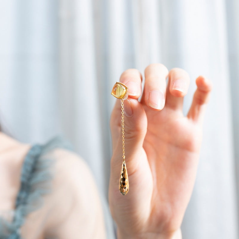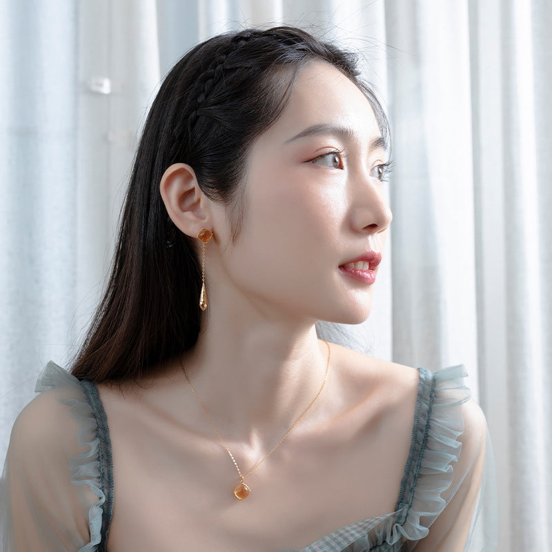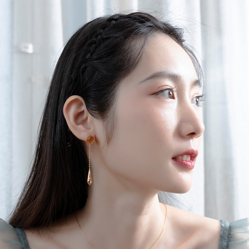 Simple luxury elegant jewelry earrings, hand inlaid with exquisite citrine gemstone