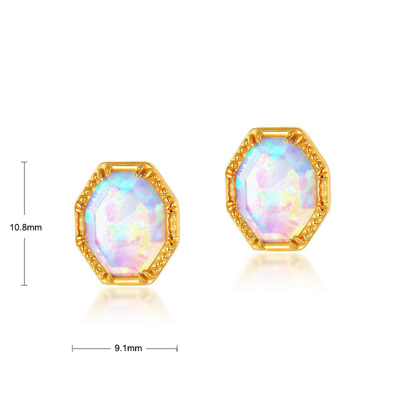 Simple luxury stud earrings, hand inlaid with unique exquisite magical color opal