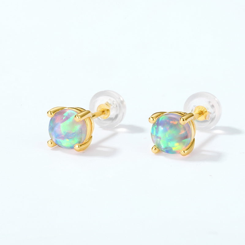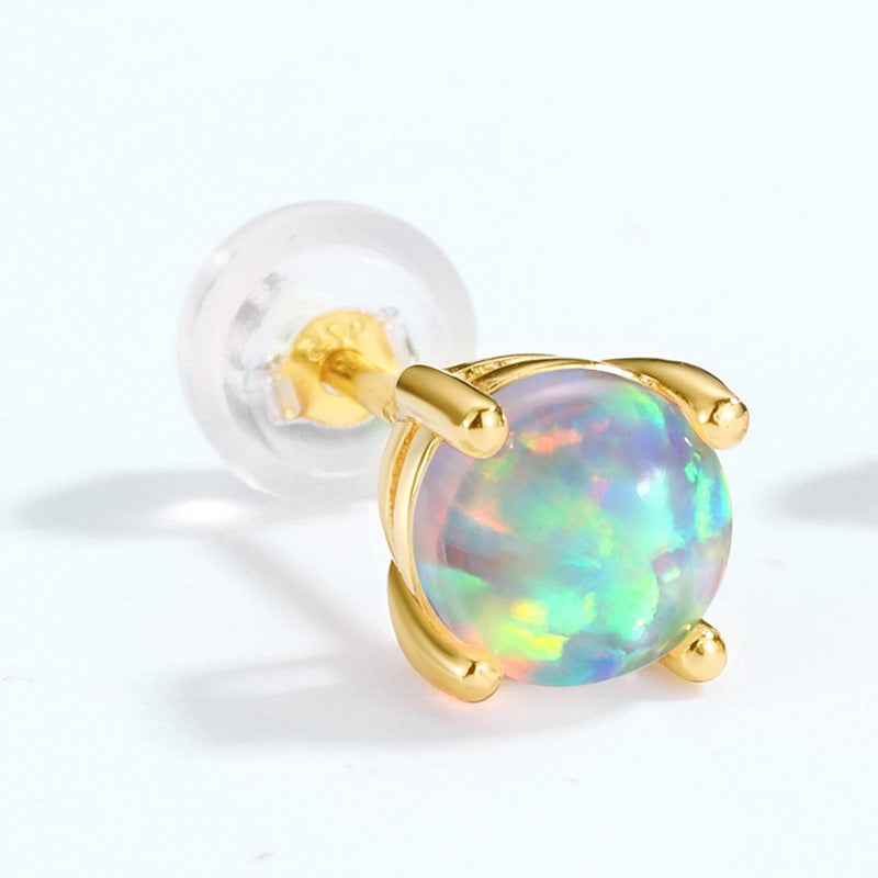 S925 Sterling Silver Jewelry Earrings Gold Plating Opal Gemstone Simple Luxury Stud Earrings