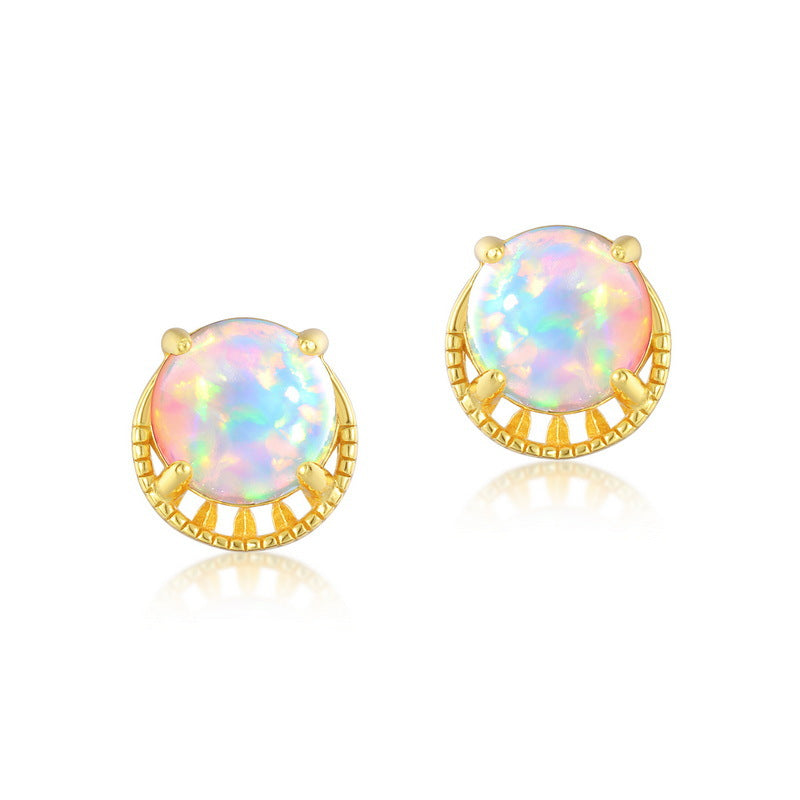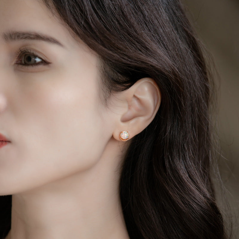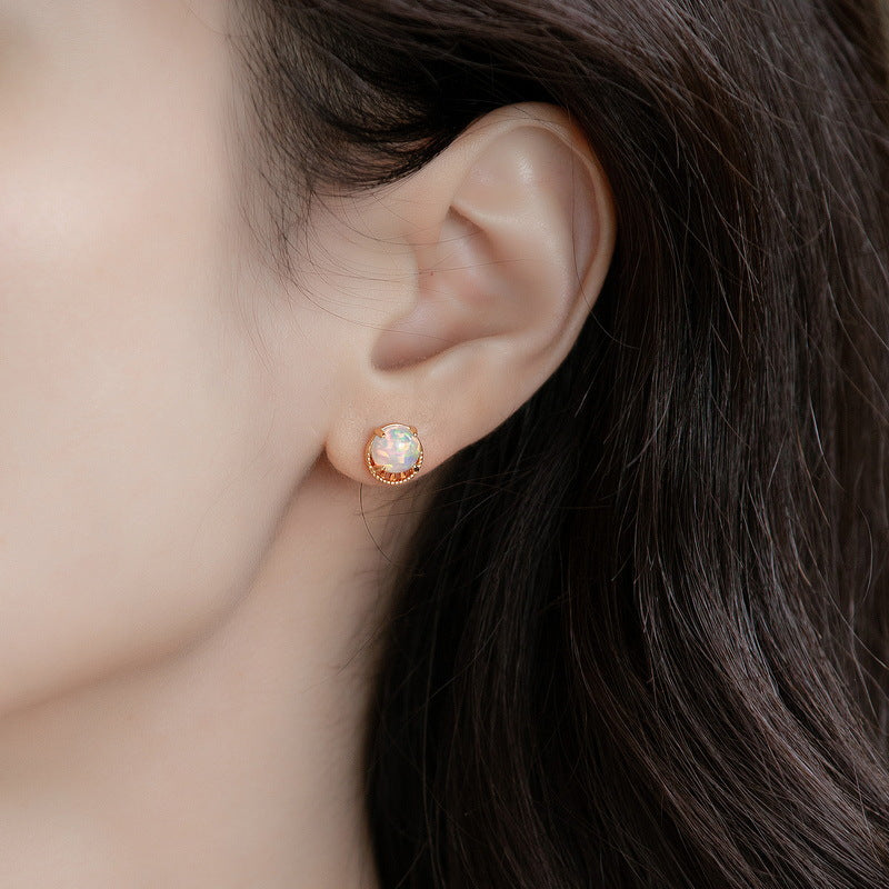S925 Sterling Silver Jewelry Earrings Gold Plating Opal Gemstone Simple Luxury Stud Earrings