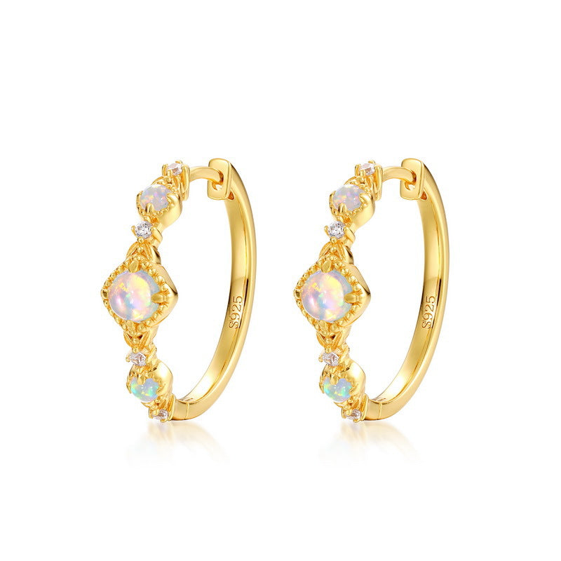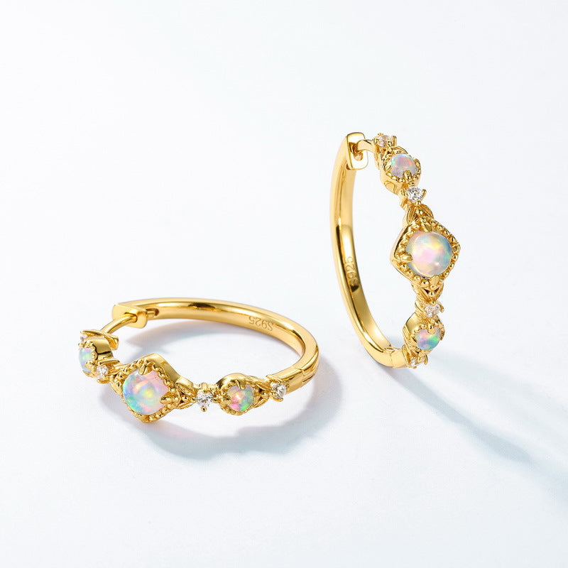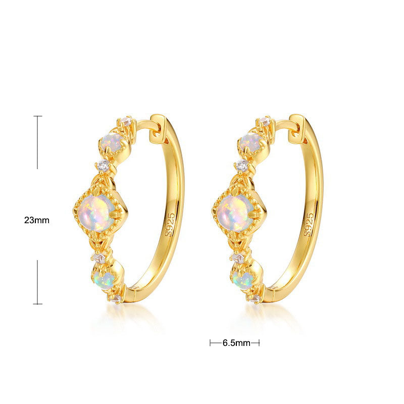 S925 Sterling Silver Jewelry Earrings Magical Color Opal Gemstone Hoop Earrings