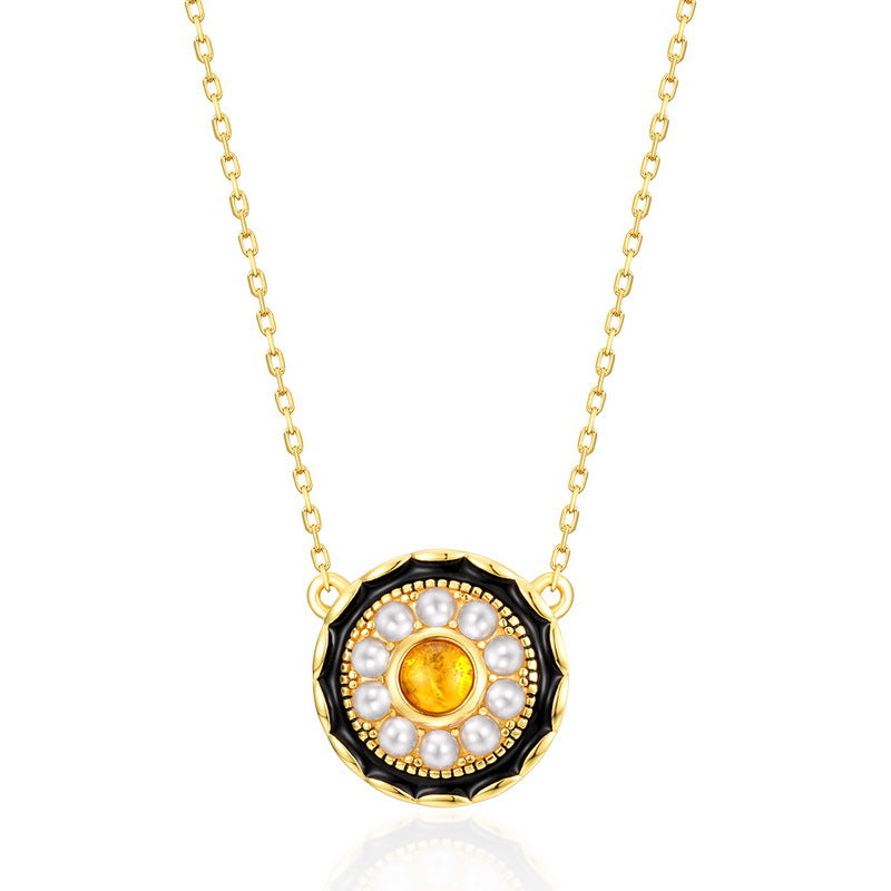 Main Stone: 4*4mm Natural Amber, 2-2.2mm Shell Pearl