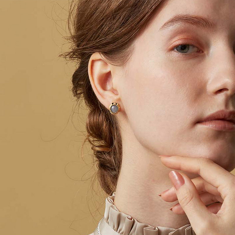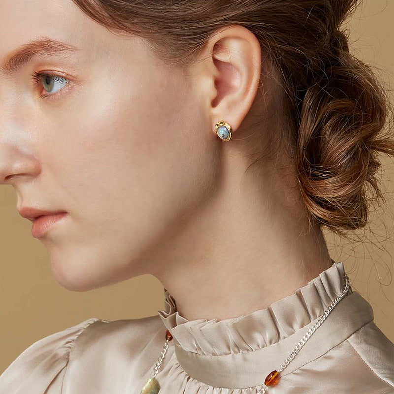 Simple luxury elegant jewelry earrings, inlaid with exquisite natural labradorite gemstone