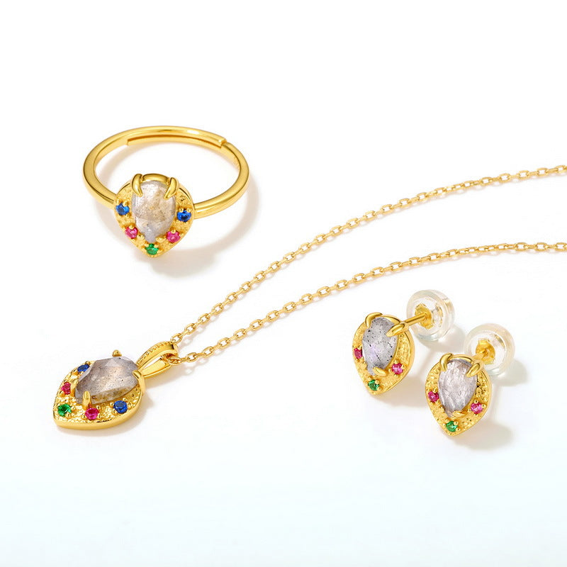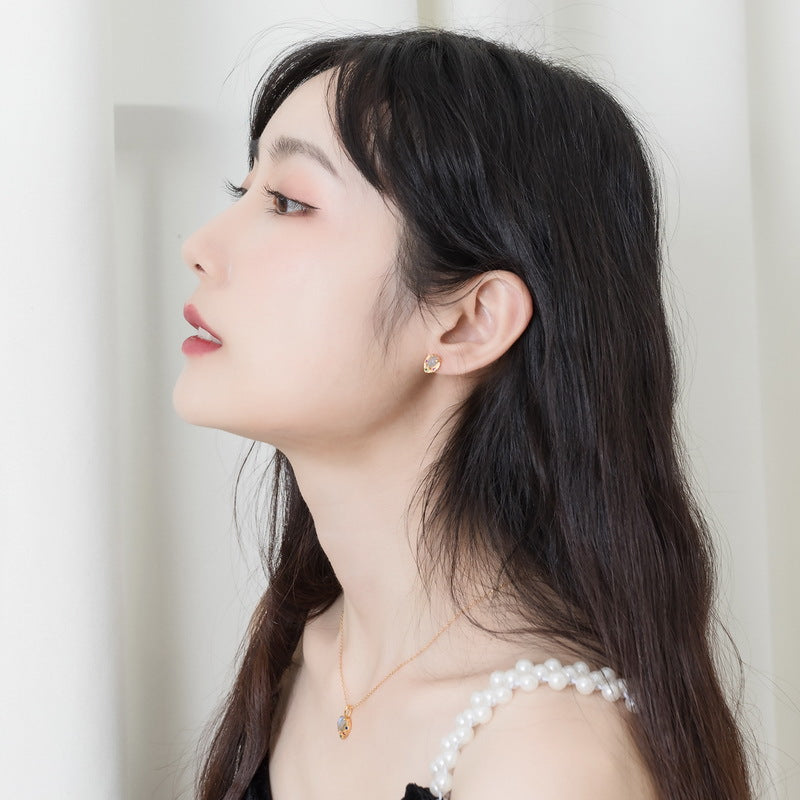 Simple luxury elegant jewelry earrings, inlaid with exquisite natural labradorite gemstone