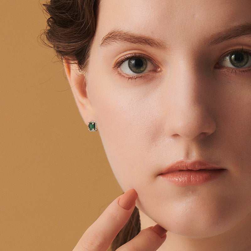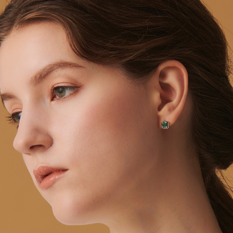 Simple luxury elegant jewelry earrings, inlaid with exquisite natural malachite gemstone