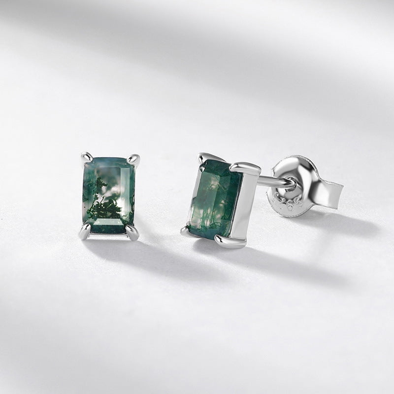 S925 Sterling Silver Jewelry Earrings Natural Moss Agate Gemstone Geometric Style Earrings