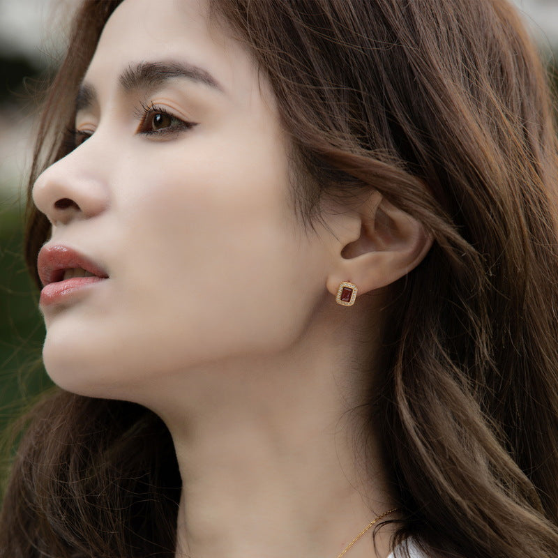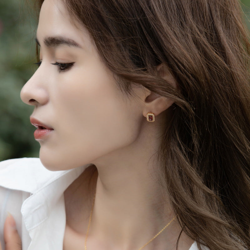 Simple luxury elegant jewelry earrings, hand inlaid with exquisite natural Mozambique garnet gemstone