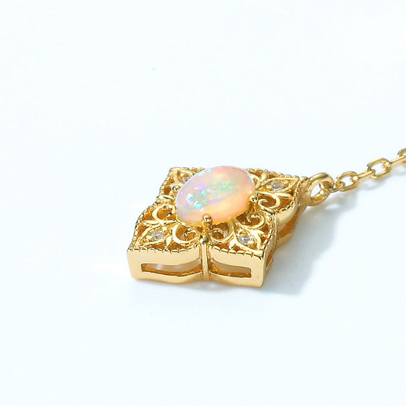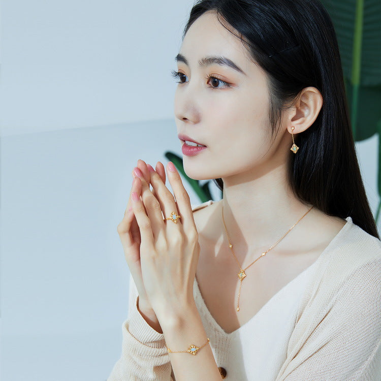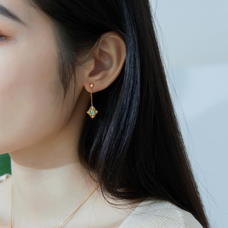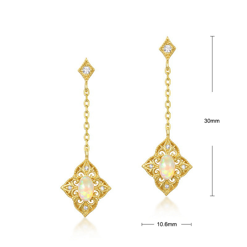S925 Sterling Silver Jewelry Earrings Natural Opal Gemstone Floral Style Drop Earrings