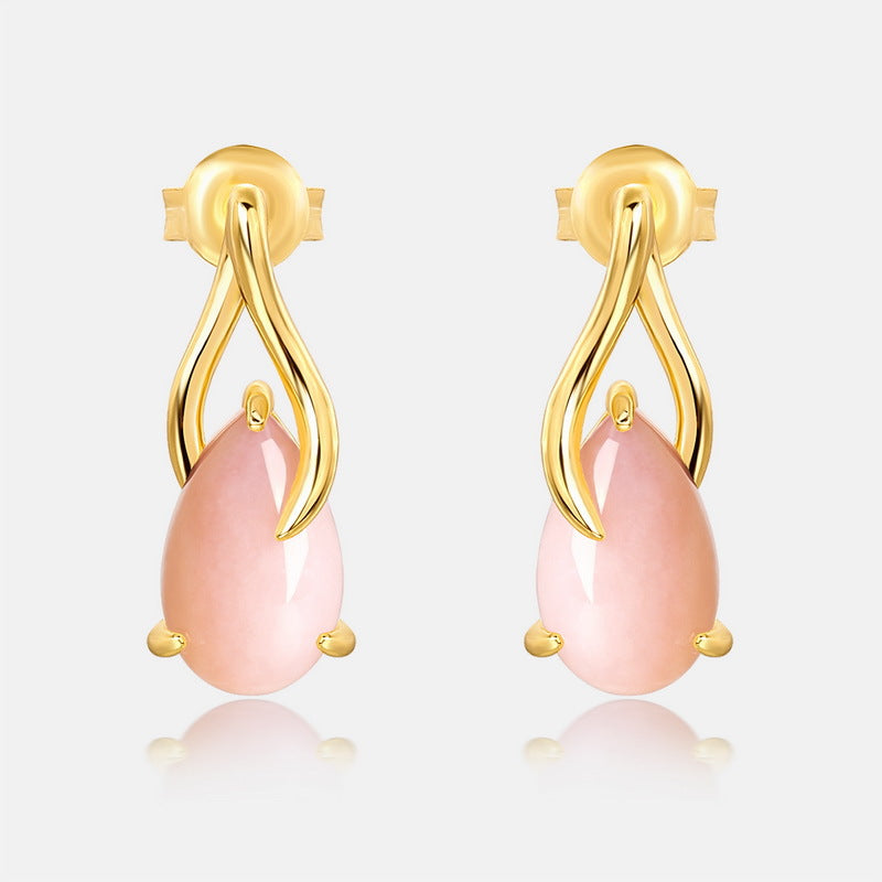 S925 Sterling Silver Jewelry Earrings Natural Pink Opal Gemstone Simple Luxury Earrings