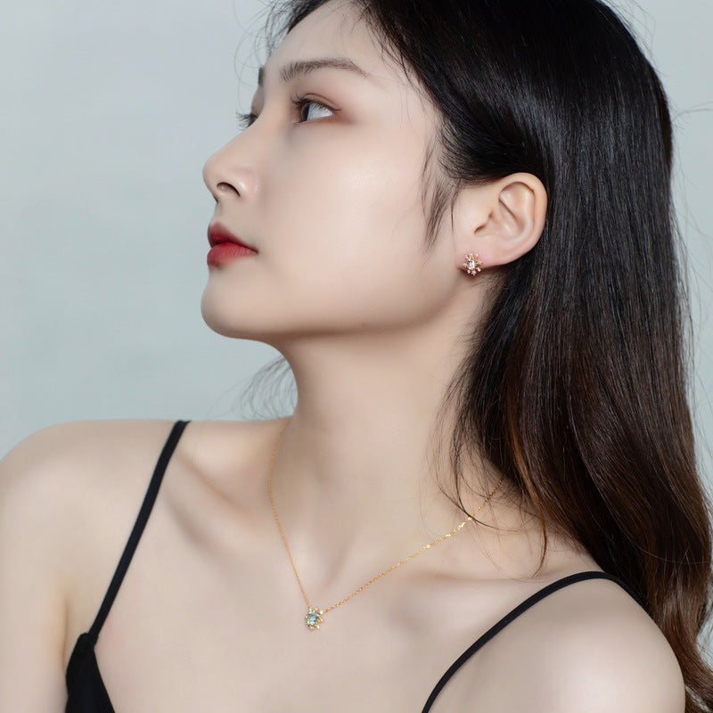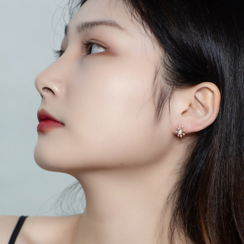 Simple luxury elegant jewelry earrings, hand inlaid with exquisite sky blue topaz gemstone