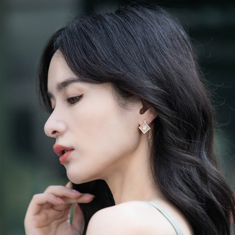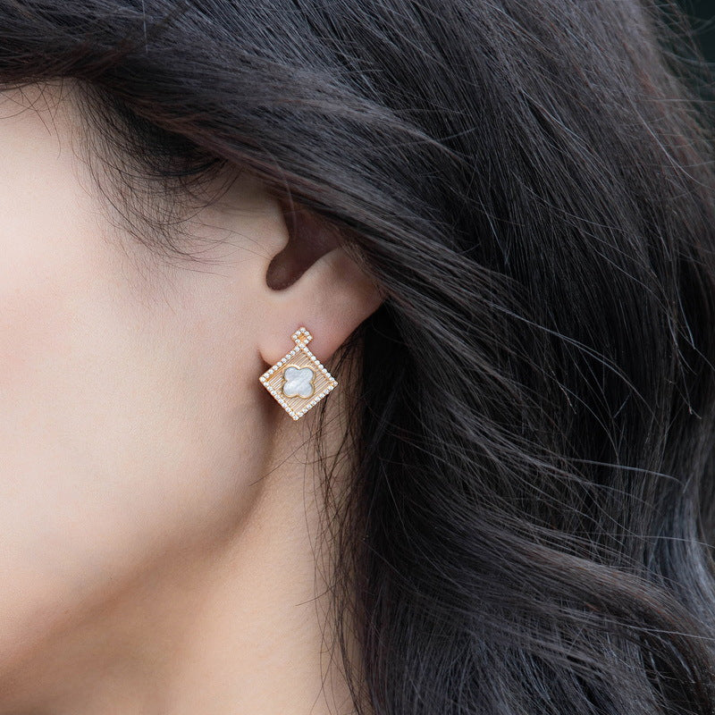 Simple luxury elegant jewelry earrings, inlaid with exquisite natural white shell gemstone