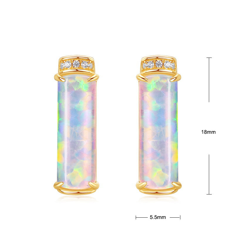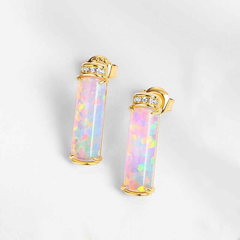 S925 Sterling Silver Jewelry Earrings Opal Gemstone Geometric Style Luxury Earrings
