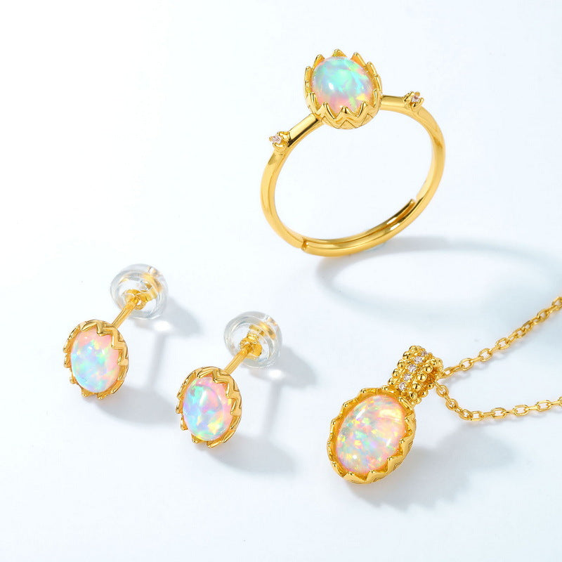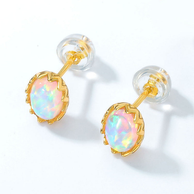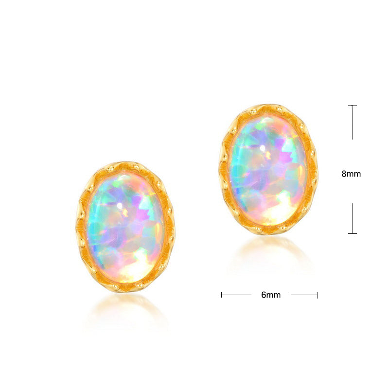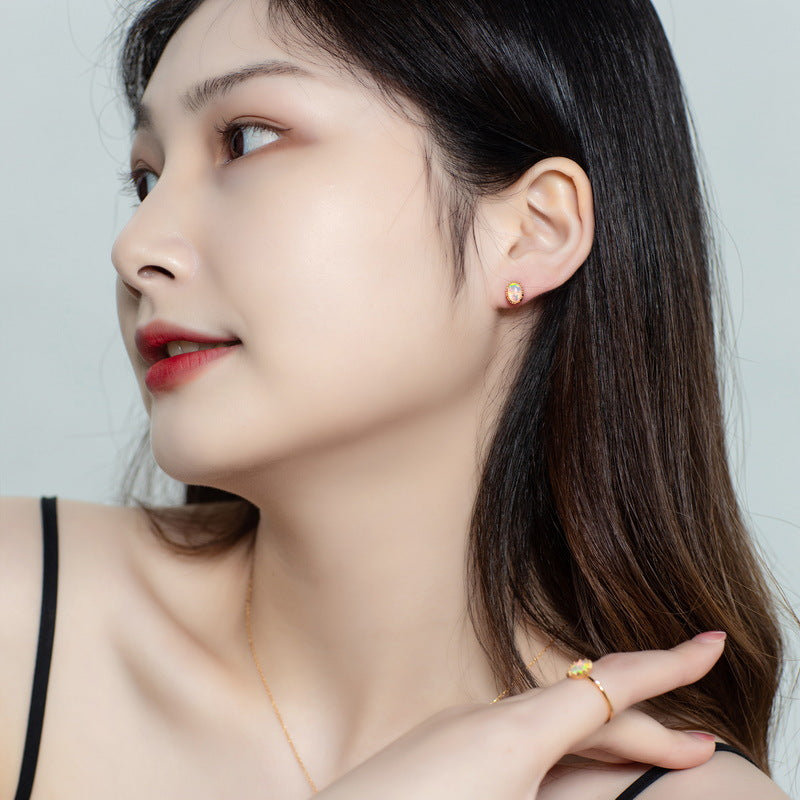 S925 Sterling Silver Jewelry Earrings Opal Gemstone Oval Style Vintage Luxury Earrings