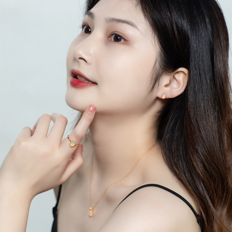 Gorgeous elegant charming jewelry earrings, inlaid with exquisite magical color opal