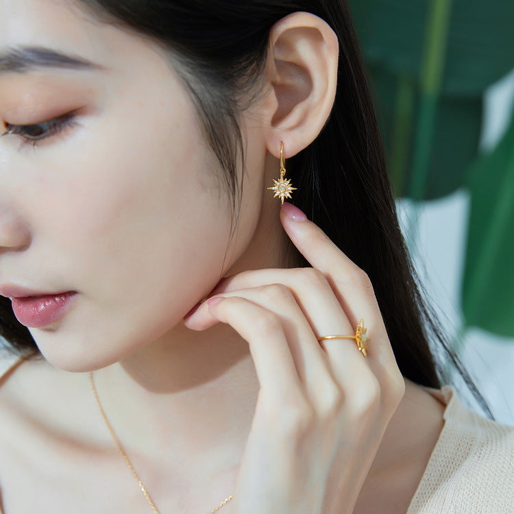 S925 Sterling Silver Jewelry Earrings Opal Gemstone Starlight Style Luxury Earrings