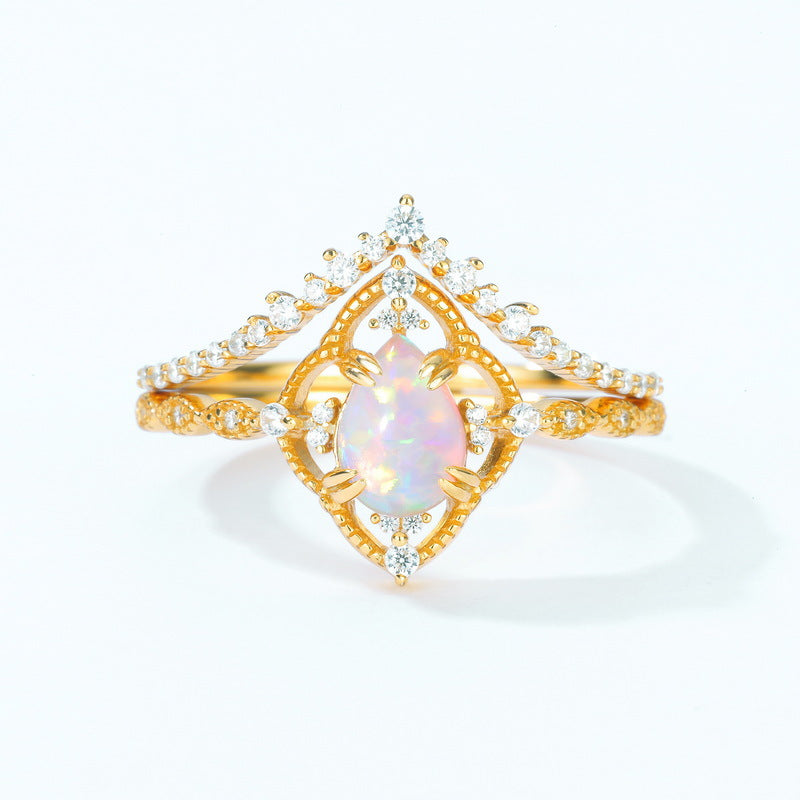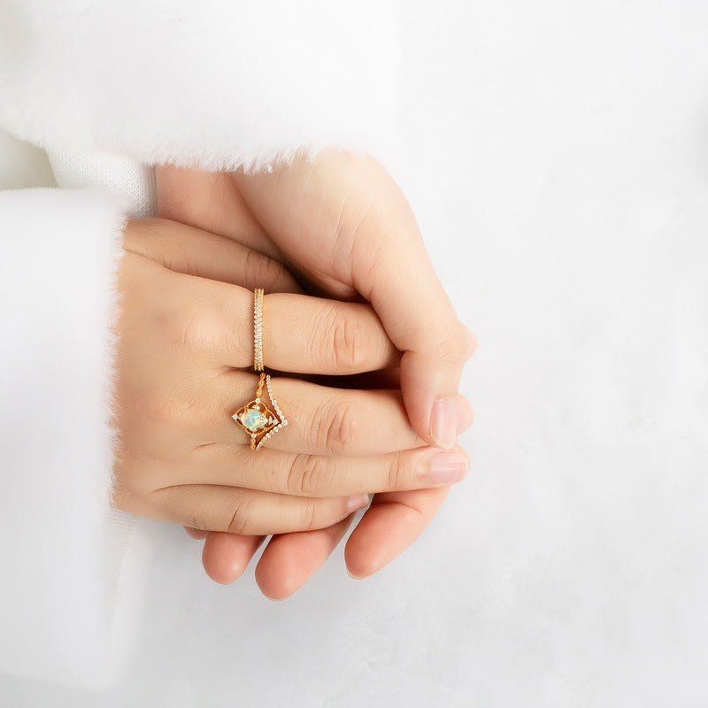 S925 Sterling Silver Jewelry Gold Plating Opal Vintage Palace Style Stacking Rings
