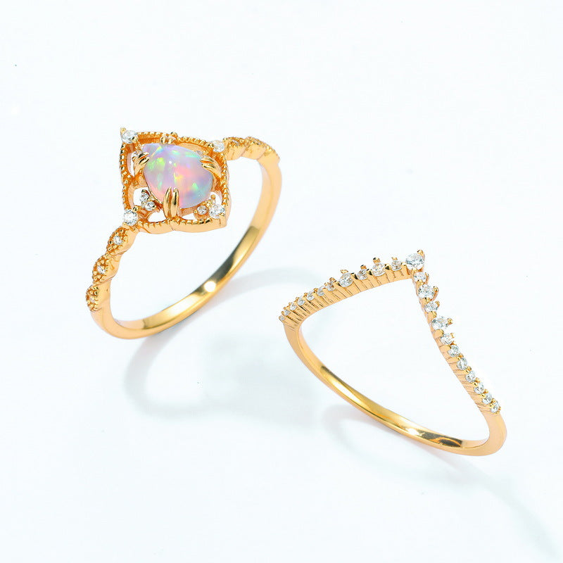 Gorgeous elegant jewelry rings, inlaid with unique exquisite magical color opal