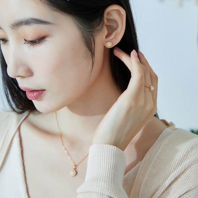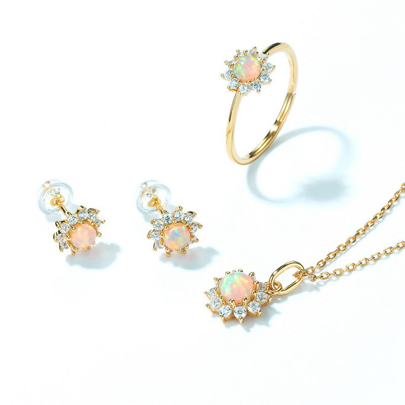 Main Stone: 4*4mm Synthetic Opal, 1.6*1.6mm White Zircon