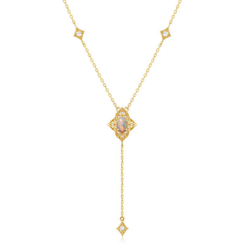 S925 Sterling Silver Jewelry Natural Opal Gemstone Floral Lace Style Luxury Necklaces
