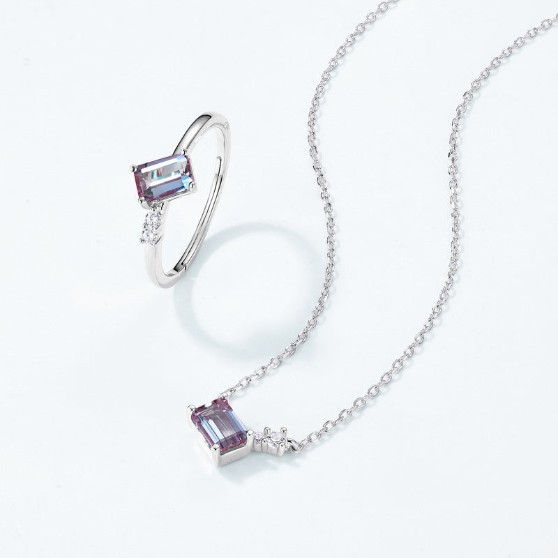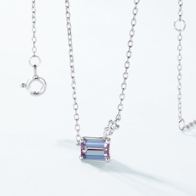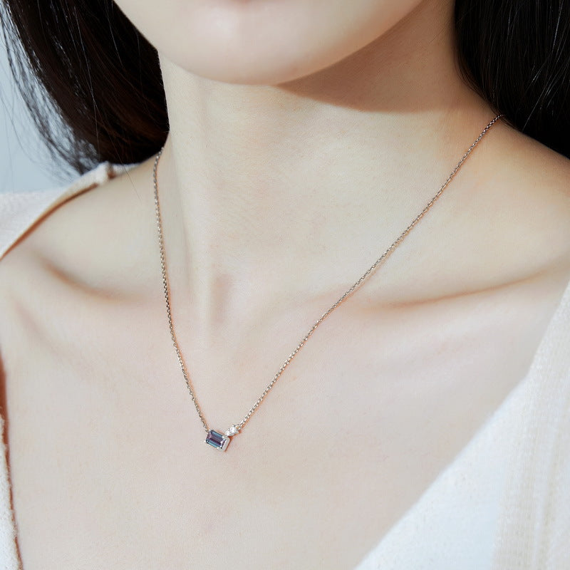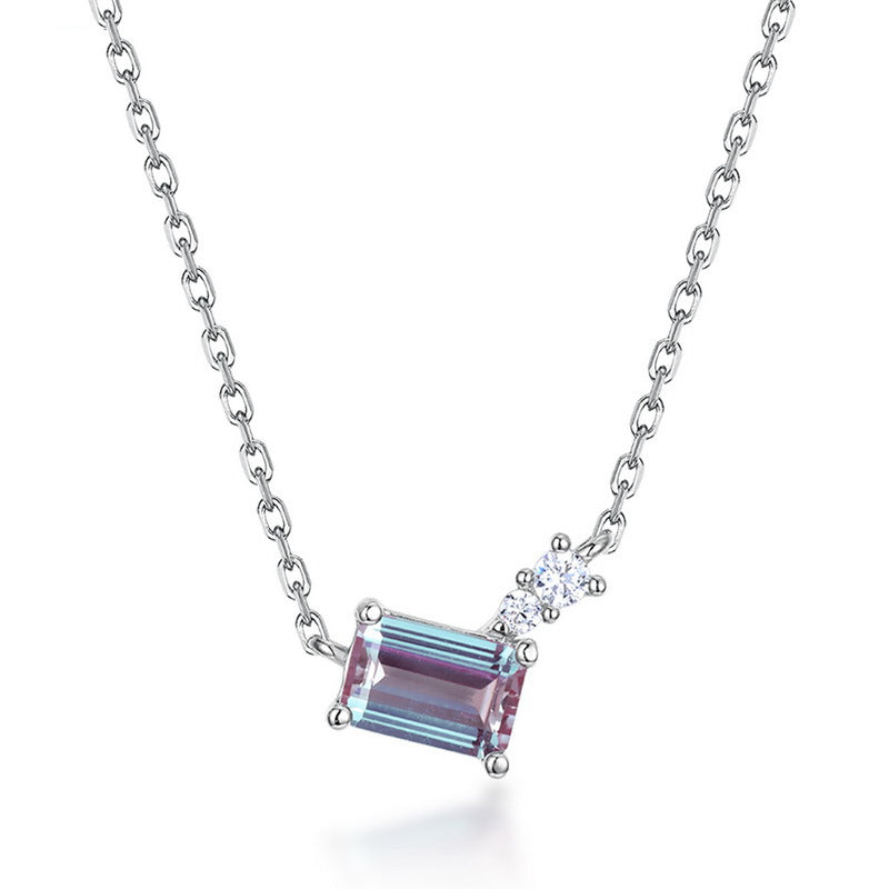 S925 Sterling Silver Jewelry Necklace Alexandrite Gemstone Simple Luxury Charms Necklace
