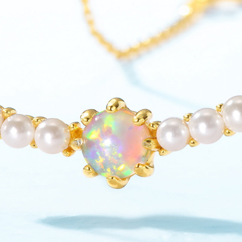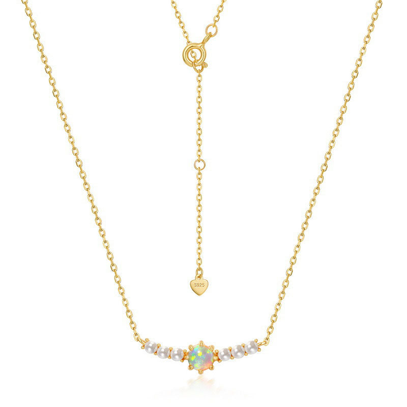 S925 Sterling Silver Jewelry Necklace Gold Plating Opal Gemstone Fashion Luxury Necklace