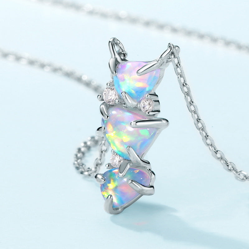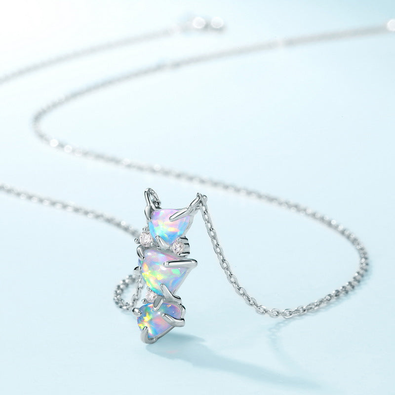 S925 Sterling Silver Jewelry Necklace Magical Color Opal Gemstone Irregular Style Necklaces