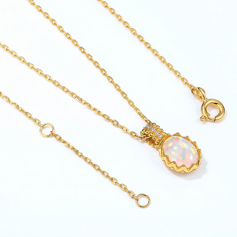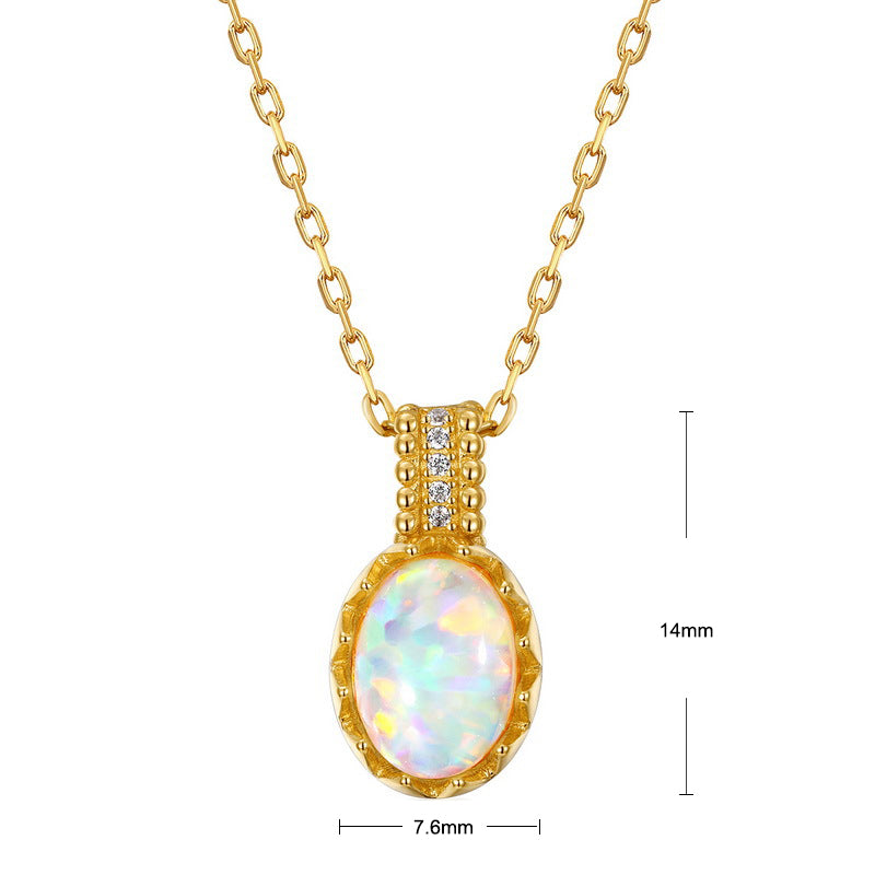 S925 Sterling Silver Jewelry Opal Gemstone Oval Style Vintage Luxury Necklace Pendant