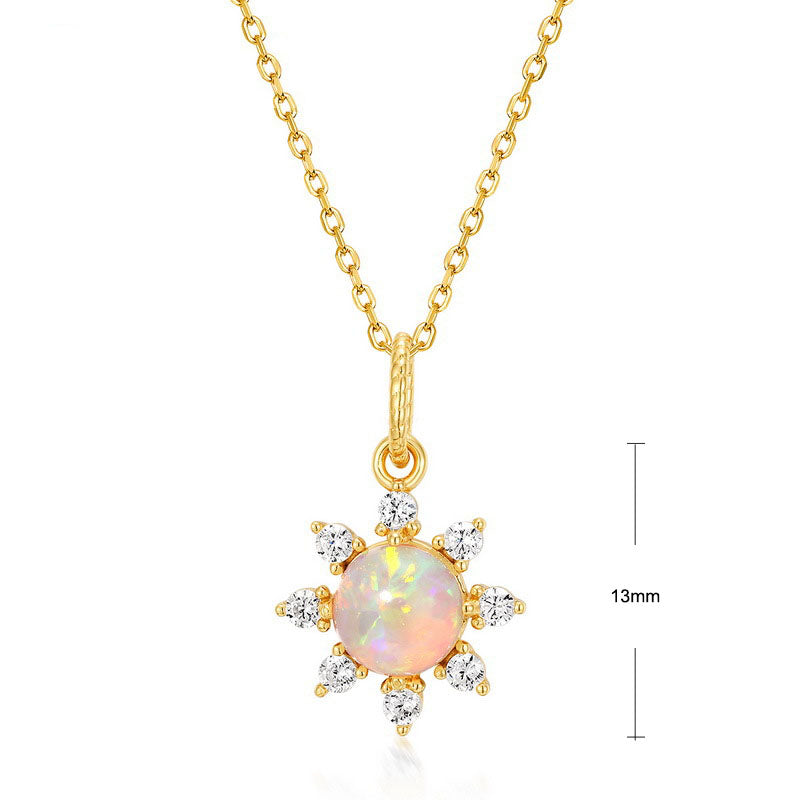 S925 Sterling Silver Jewelry Pendant Gold Plating Opal Gemstone Sunshine Style Necklace Pendant