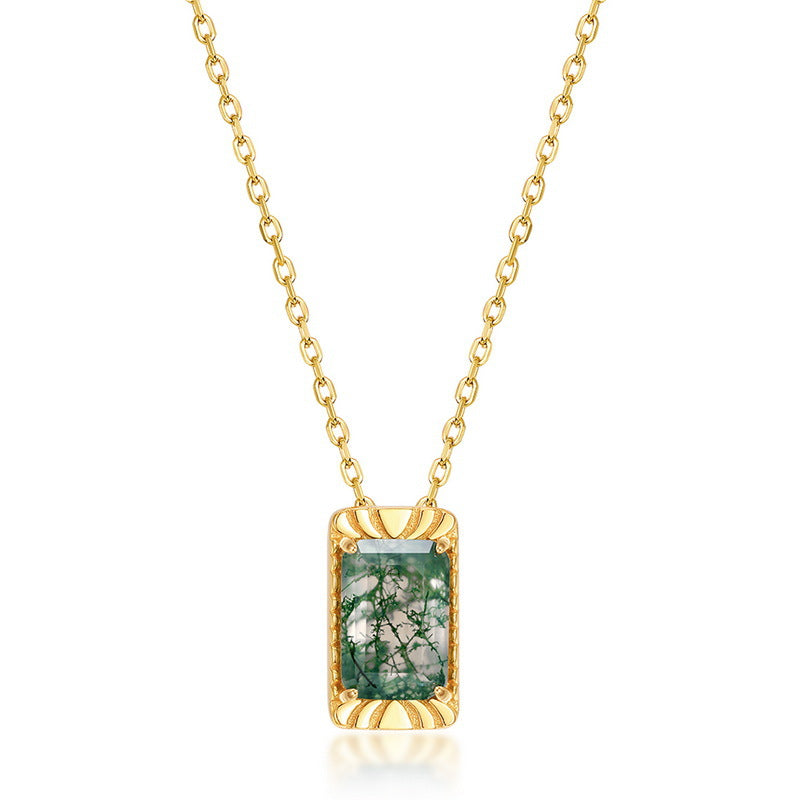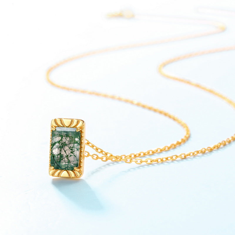 Simple luxury elegant jewelry pendants, hand inlaid with exquisite natural moss agate gemstone