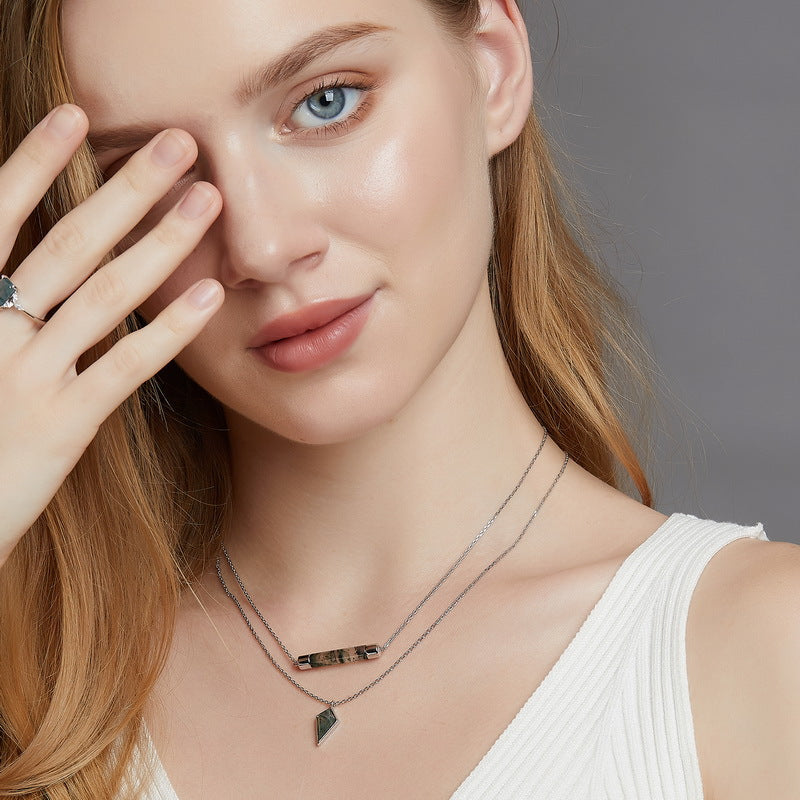 Simple luxury elegant jewelry pendants, hand inlaid with exquisite natural moss agate gemstone
