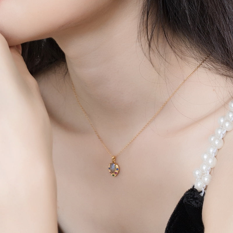 Simple luxury elegant jewelry pendants, inlaid with exquisite natural labradorite gemstone