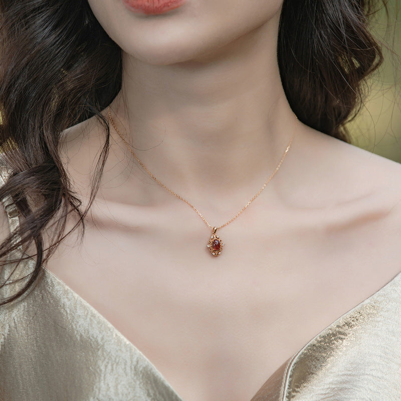 Simple luxury elegant jewelry pendants, hand inlaid with exquisite natural Mozambique garnet gemstone