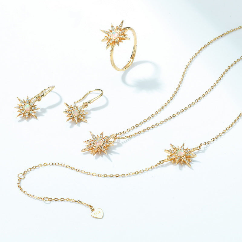 S925 Sterling Silver Jewelry Pendants Opal Gemstone Starlight Style Necklace Charms