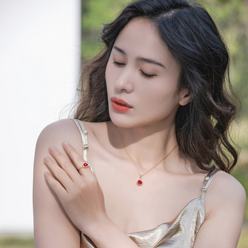 Simple luxury elegant jewelry pendants, hand inlaid with exquisite red corundum gemstone