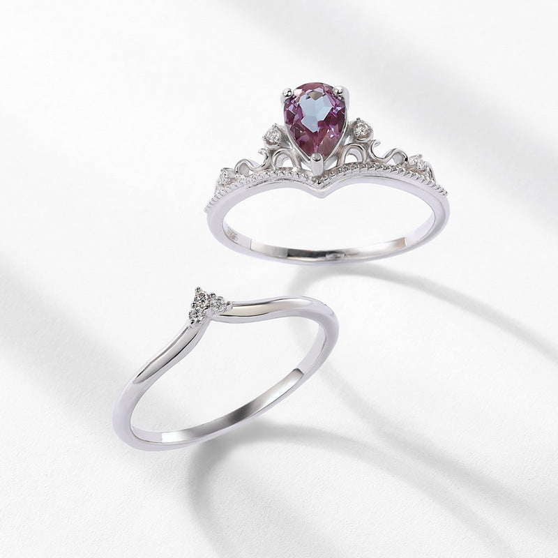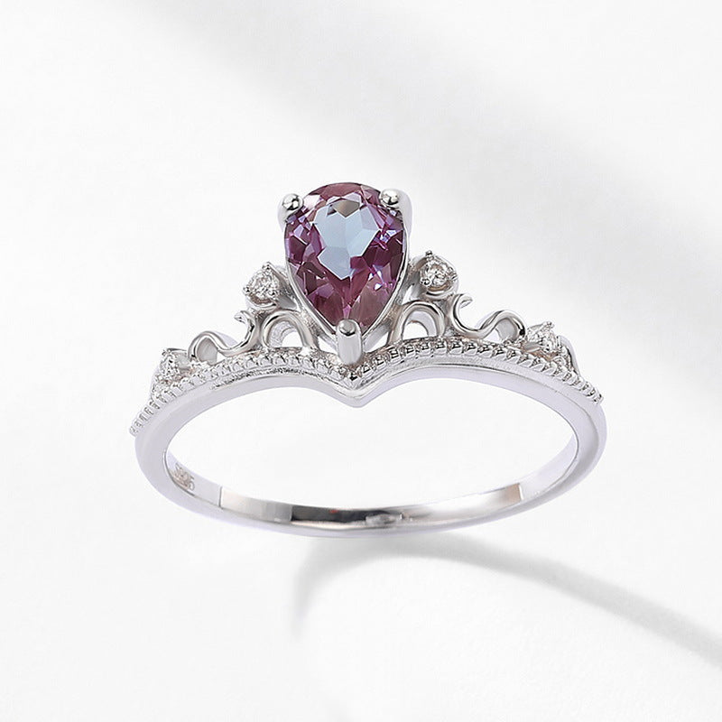 S925 Sterling Silver Jewelry Ring Alexandrite Gemstone Crown Style Stacking Rings