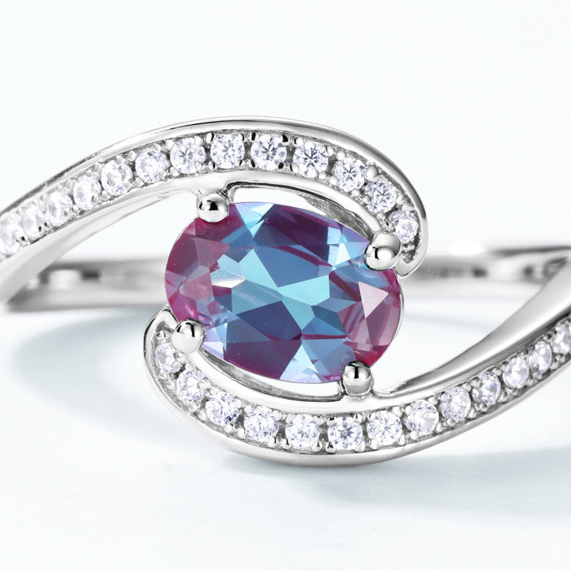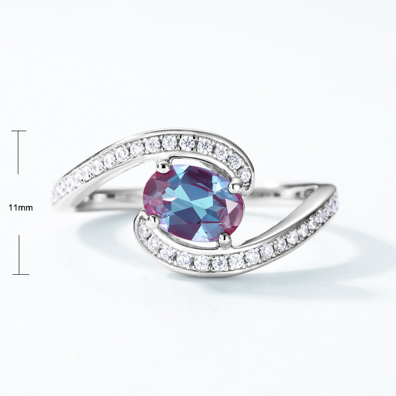 S925 Sterling Silver Jewelry Ring Alexandrite Gemstone Unique Wave Style Rings