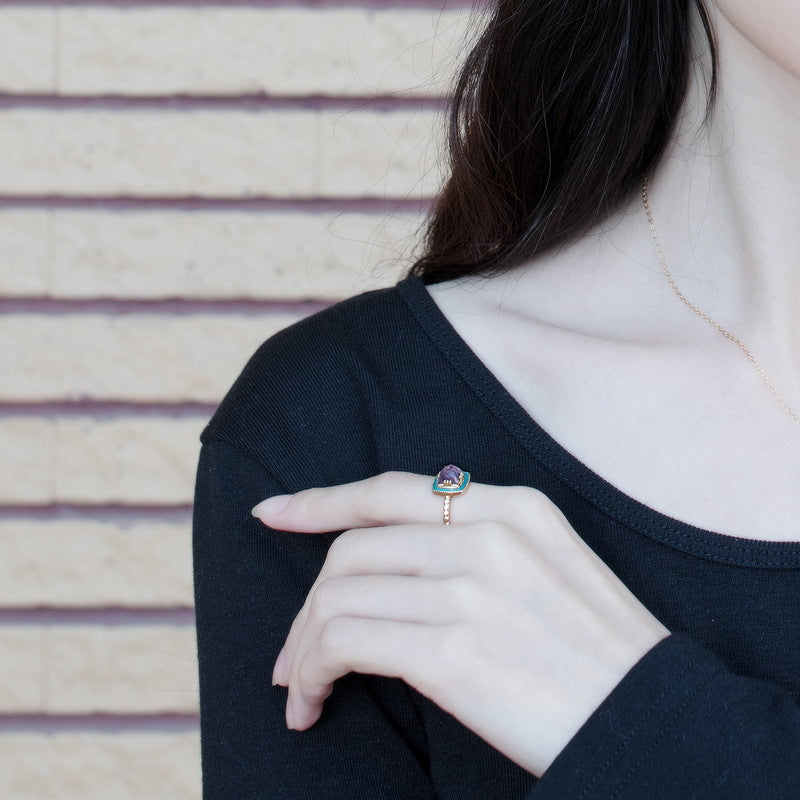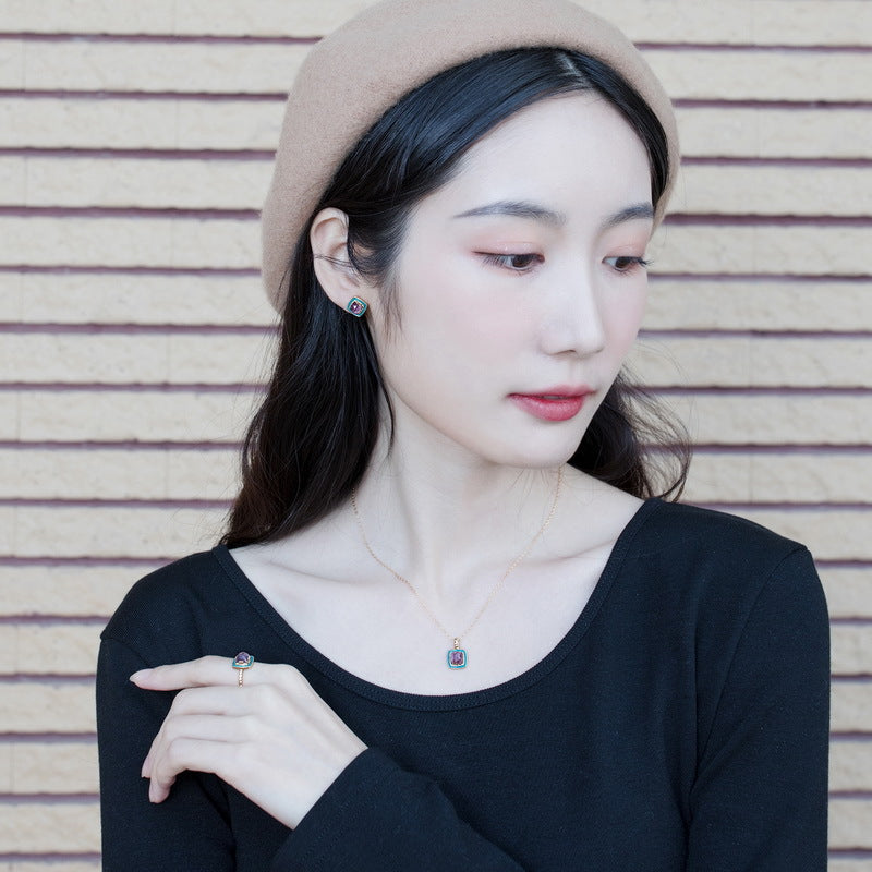 Main Stone: 6*6mm Natural Amethyst, Enamel
