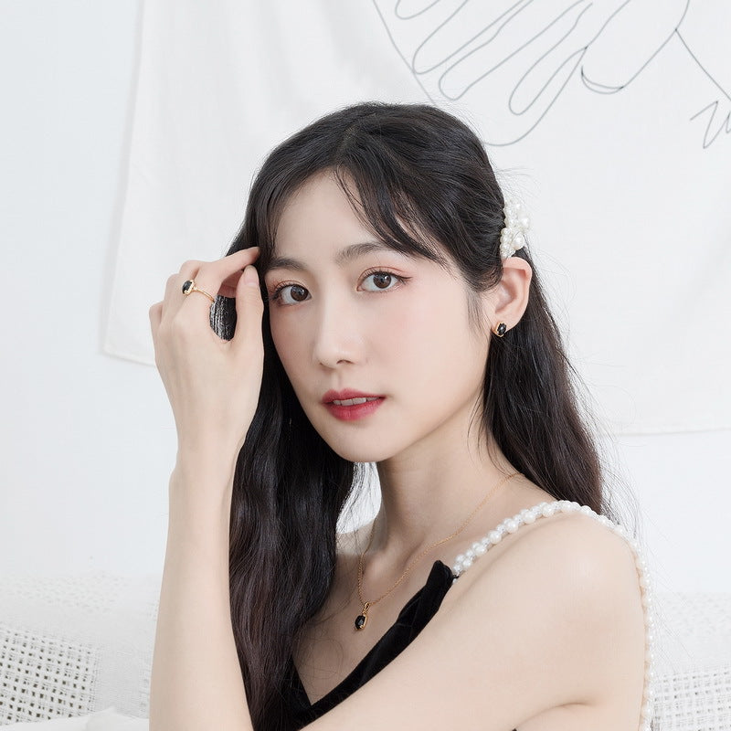 Simple luxury elegant jewelry rings, hand inlaid with exquisite natural black onyx gemstone
