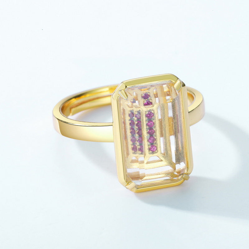 Simple luxury elegant jewelry rings, inlaid with exquisite natural clear quartz gemstone