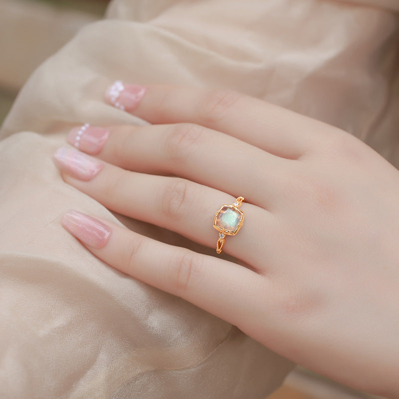 Simple luxury elegant jewelry ring, inlaid with exquisite natural labradorite gemstone