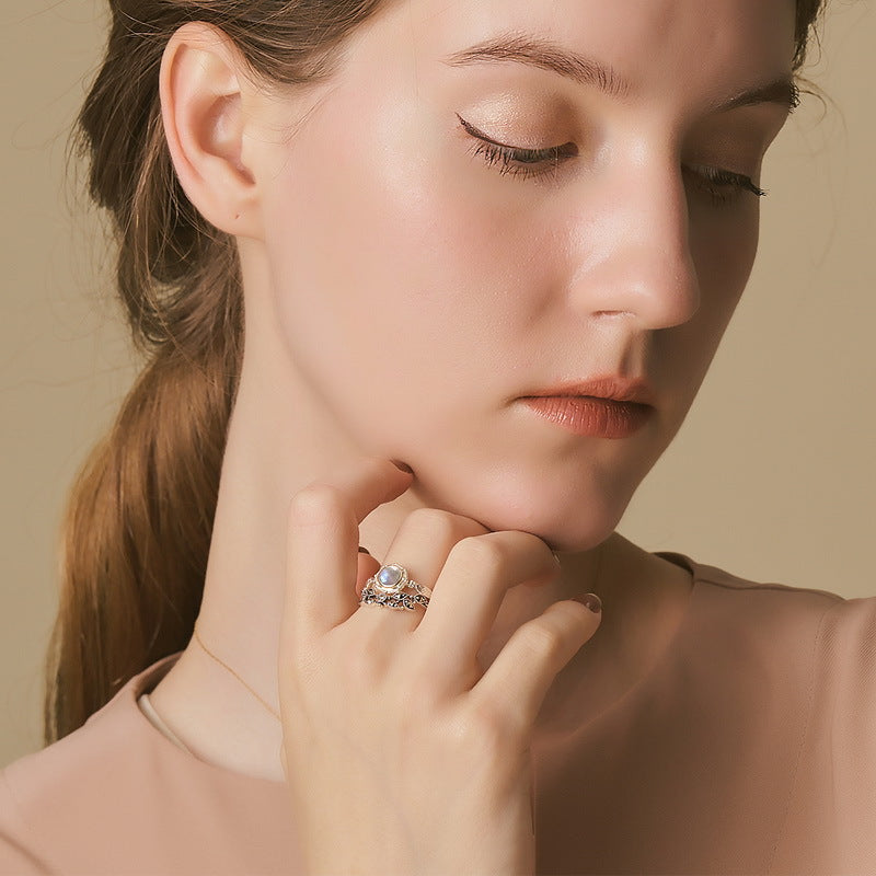 Simple luxury elegant jewelry ring, inlaid with exquisite natural labradorite gemstone